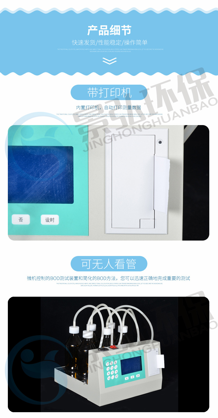 10.樣品稀釋容易,可以測(cè)量高量程的BOD有效、完整的分析BOD測(cè)量過程中,BOD測(cè)試裝置靈敏的壓力探頭連續(xù)監(jiān)測(cè)樣品氧氣消耗量的變化,儀器直接測(cè)量得BODmg/L濃度不用計(jì)算或外推,采用壓力探頭避免使用汞壓力計(jì)和溶解氧測(cè)定。