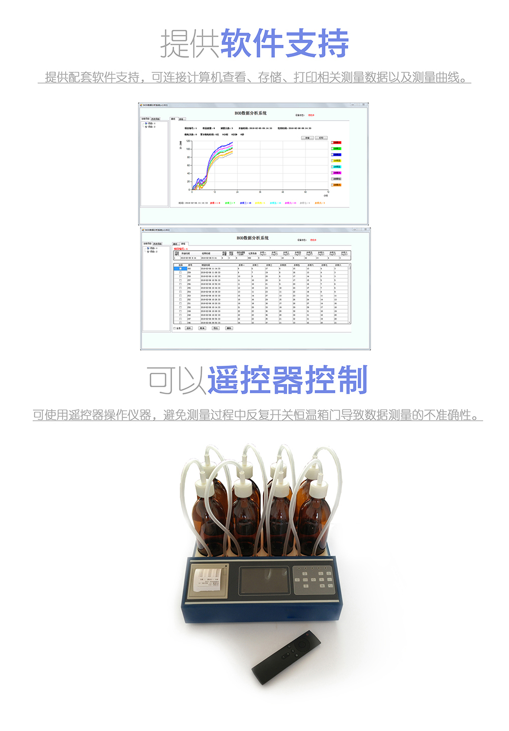 ? 數(shù)據(jù)輸出:RS232USB,配套專用BOD數(shù)據(jù)采集分析軟件