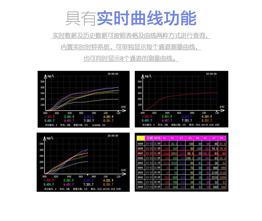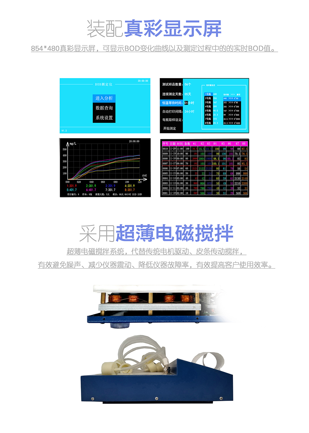 2、 真彩顯示屏,可顯示BOD變化曲線以及測(cè)定過程中的的實(shí)時(shí)BOD值。