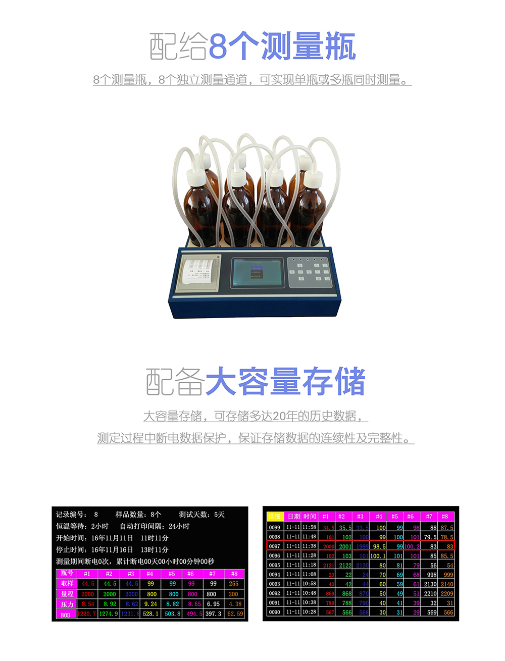 7、 8個(gè)測(cè)量瓶,8個(gè)*立測(cè)量通道。